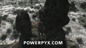 This treasure is on the cliffs above The Scratching Post. Look to the north.