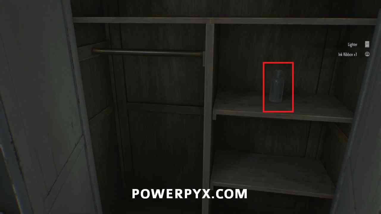 Before leaving this room interact with the cabinet and pick up the Empty Bottle, which can be thrown to distract enemies and you will want to keep at least one Empty Bottle for a trophy later on.