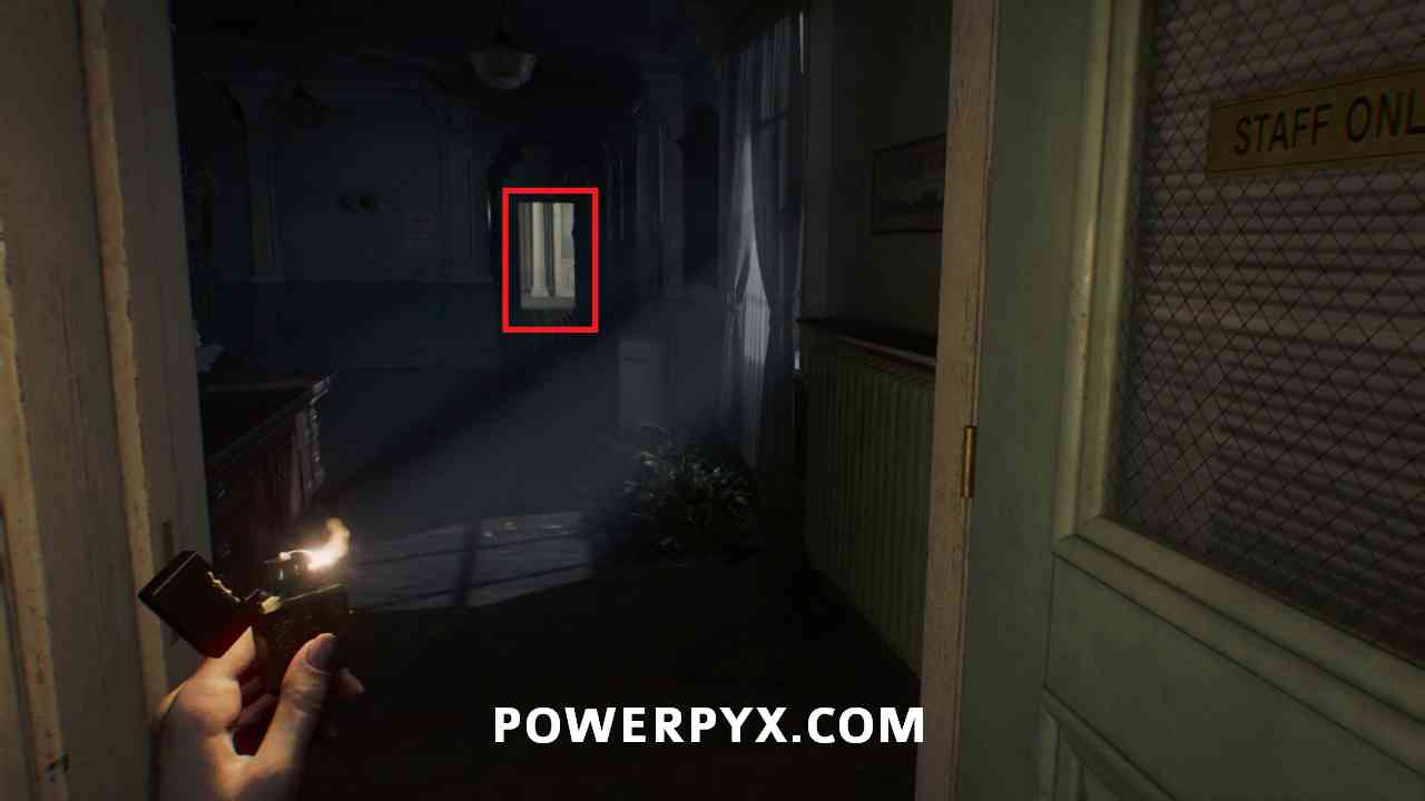 Go back into the hallway to the Nurses’ Station in the southeast corner. This will be the first time you are attacked by the monster in this area, and need to run back to the room you woke up in with the light on. The monster can’t go into rooms with lights, so this is how to deal with it in this section.