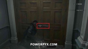 After the first set of enemies are dealt with go into the office and interact with the painting behind the desk, then pull the level that appears. More enemies will appear while you are waiting for the door to open, so take them out as they appear. Use the throwables in the third room if you didn’t use them already to save ammo. Once the gate is open you can go through and use the elevator to complete this section.
