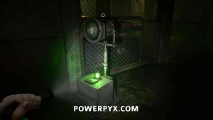To start exit the save room, then interact with the green lift button to prompt going to the lower floor. Drop down two levels and make sure to pick up the 12.7x55mm ammo pick immediately after the second drop. Keep walking forward and you’ll encounter a three way split path where The Girl will appear in front of you. Back up toward where you dropped down, then when she moves to the left move to the path leading to the right. Keep rotating right and The Girl should have started chasing you, but you will encounter a light in the corner. You can activate these lights to temporarily stun The Girl, but after they are used they will burn out and can’t be used again so make sure you time them correctly.
