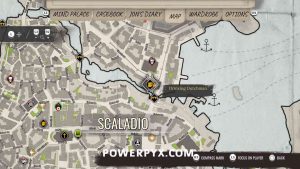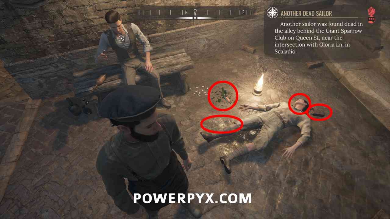 Curse Correction – With the barkeeper select the dialogue “Three people are dead?”. You can simply talk to him again if you didn’t pick it the first time. This gives the optional objective “Another Dead Sailor”. Completing this unlocks the trophy. Do this now before advancing with other objectives. Head to Giant Sparrow Club in Scaladio:
