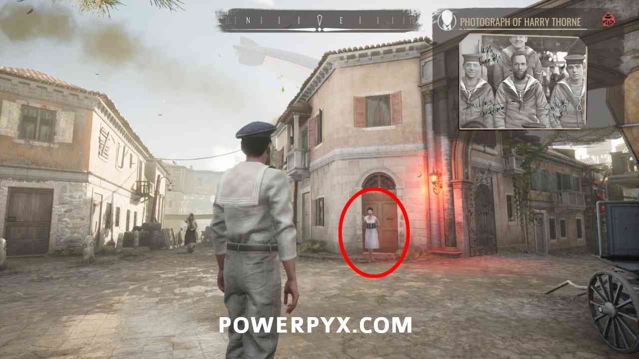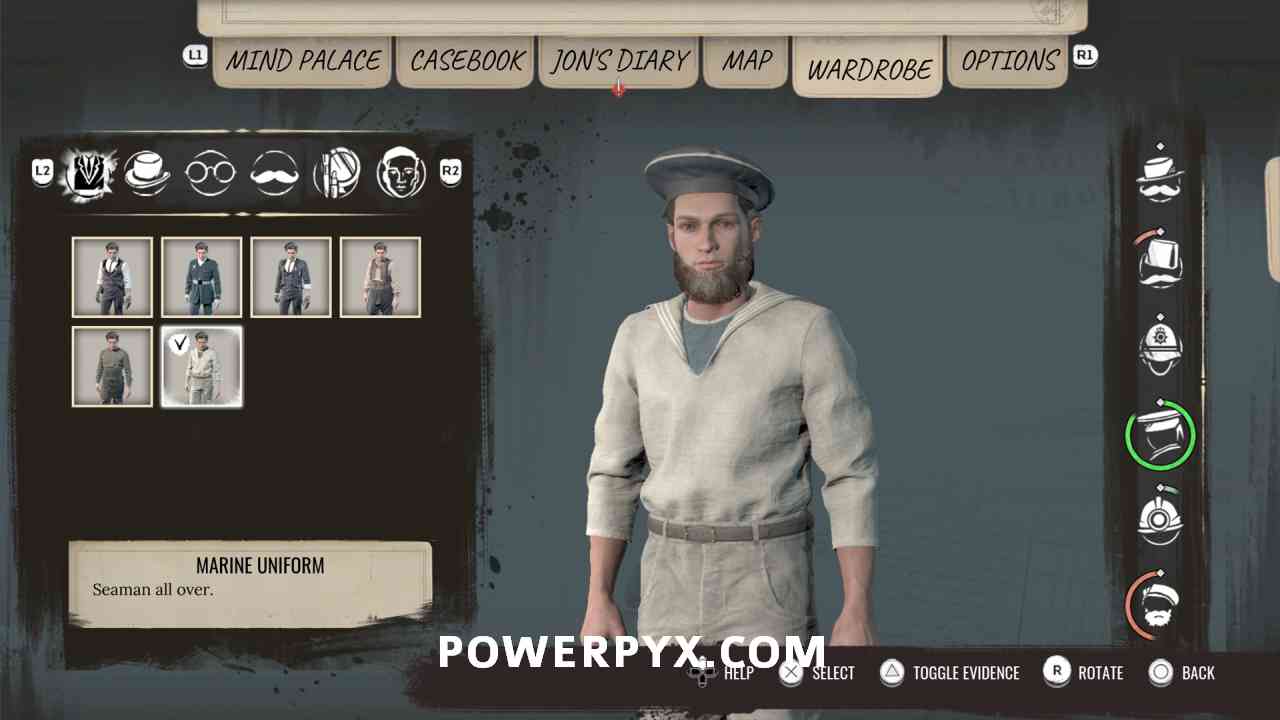 21) Go meet Elisa, a girl down the street and our prime suspect. You have to mimic the outfit from the casebook clue “Photograph of Harry Thorne”. Wear the “Marine Uniform”, “Sailor Cap”, “Shenandoah Beard”. Can buy these from the clothing traders marked by green icons on the map. Talk to her with this outfit on, otherwise you can’t proceed.
