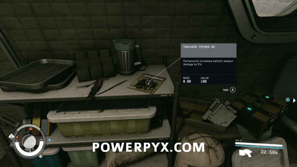 Enter the room and look immediately to the left, where you can find the Magazine Trackers Primer 02 sitting on a shelf.
