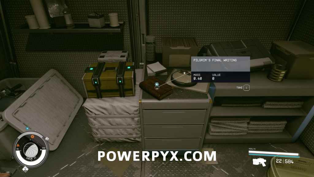 Then look to the right of the room where you can find the book “Pilgrim’s Final Writing” on another table. Pick it up to automatically read it.