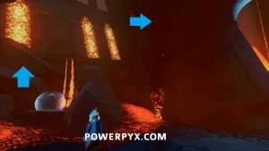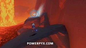 Secret Shell #47 – In the next area with the boats floating in the lava, on the right side of the area near the stele is a boat sideways in the lava. Jump on it to reach the ledges and follow them to the right where there is a small cave with the shell.