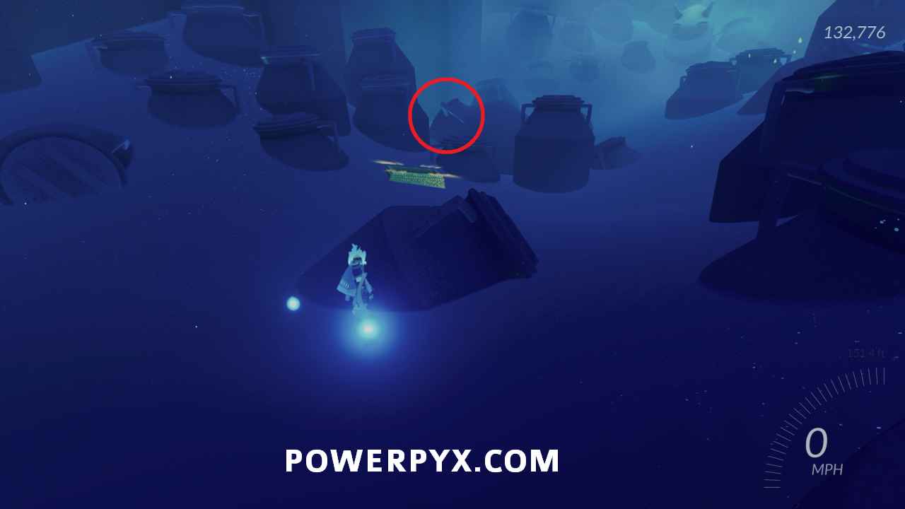 Secret Shell #37 – After activating the first water point outside and jumping up the jellyfish to the pillar, use water rails to jump across the boats to the third one where there is a small cave with the shell.