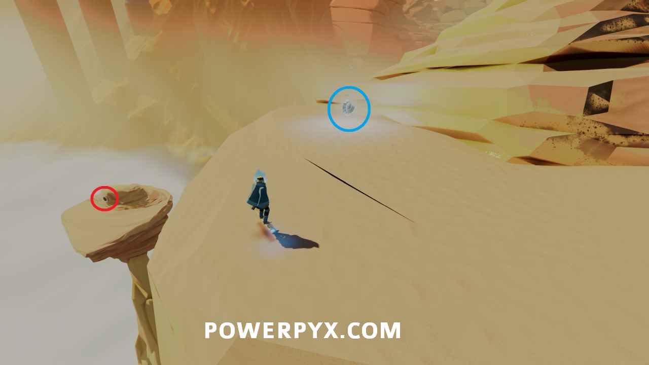 Secret Shell #3 – In the large open area keep to the left wall where you can find a group of lanterns on a slope. Turn them on to reveal an entrance, then go inside and activate the second set of lanterns to lower the sand inside the cave. Follow the path into the cave on the left to reach a water point. To the right of the stele is a small cave entrance. Bounce up the jellyfish inside and follow the path to the left where a new water point found. After activating the water a wall ride appears on the left. Use it to reach the platform at the end to find the shell.