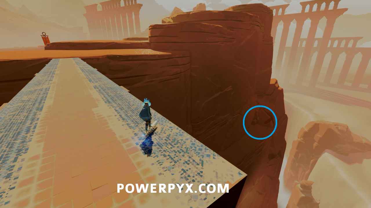 Secret Shell #7 – In the area where the second chain is located after dropping the sand by interacting with the button in the center of the area, follow the left wall up the cliff to a path with a wall ride. On the other side you can find the Secret Shell.