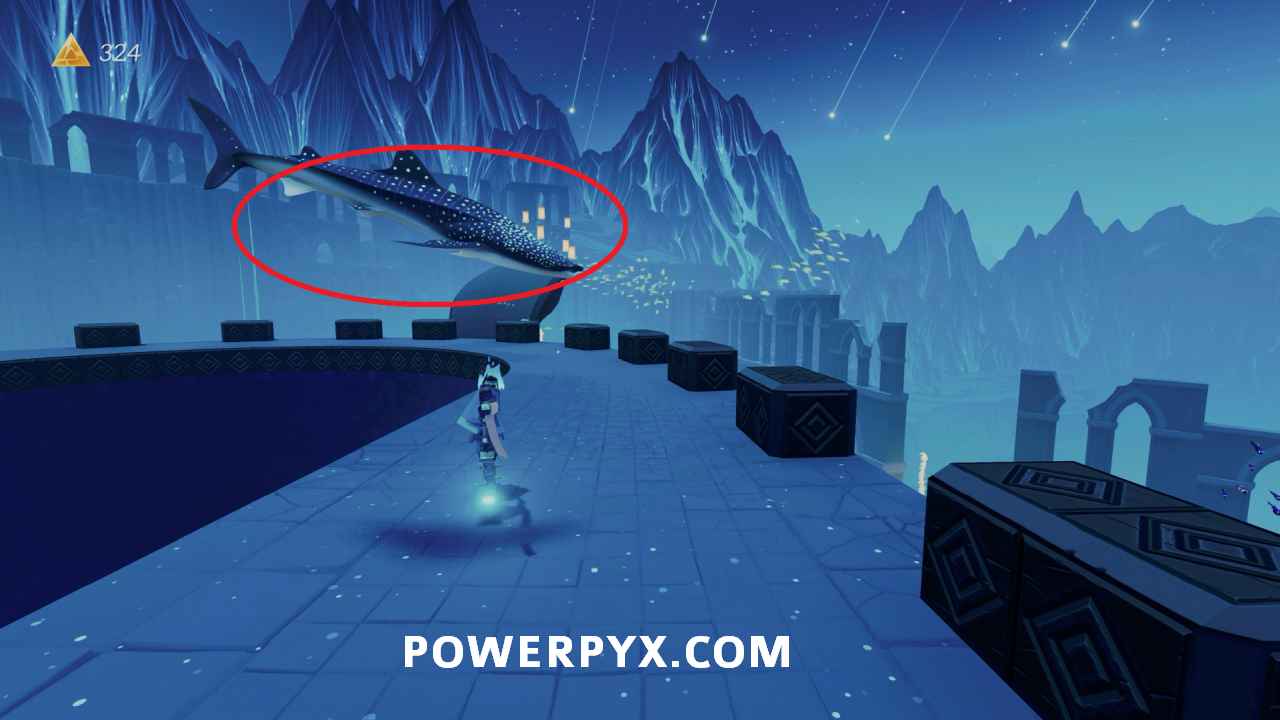 | This trophy is awarded for riding a whale shark for the first time. Whale sharks are located in the sixth level Sacred River and appear after activating the progression-related sphere water point on top of the ship. | ||