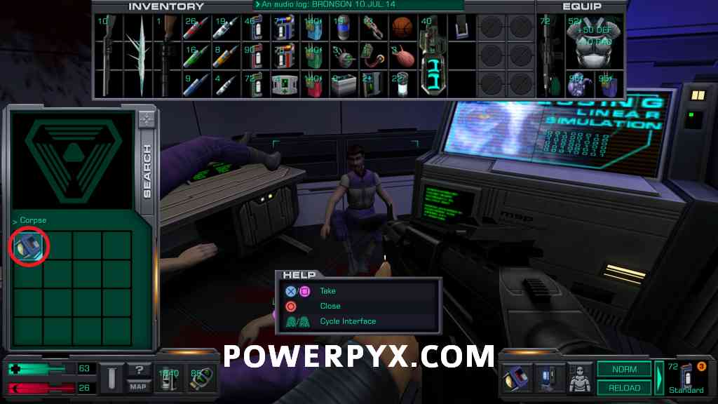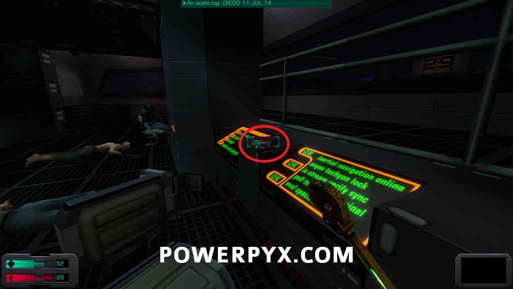 Continue and you’ll go through the opening section of the first System Shock. This Audio Log will be just before you enter a large shaft that you have to descend.