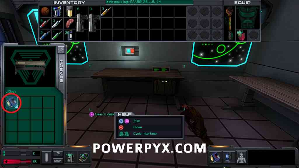 Continue west towards Medical to find this on a desk, near where you grab the dead power cell.