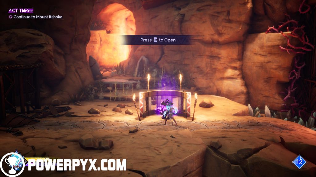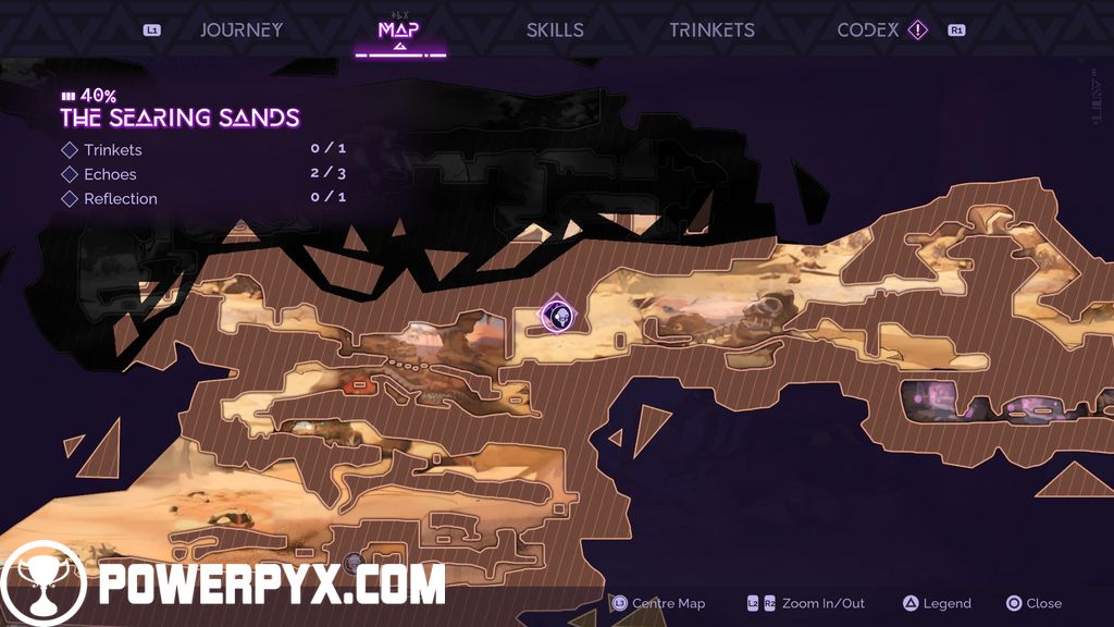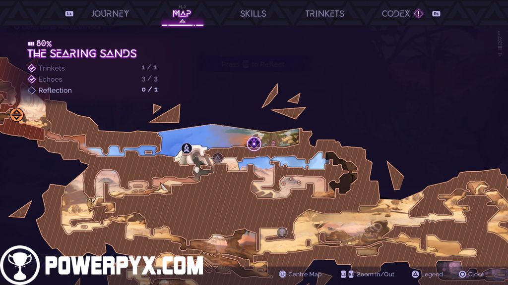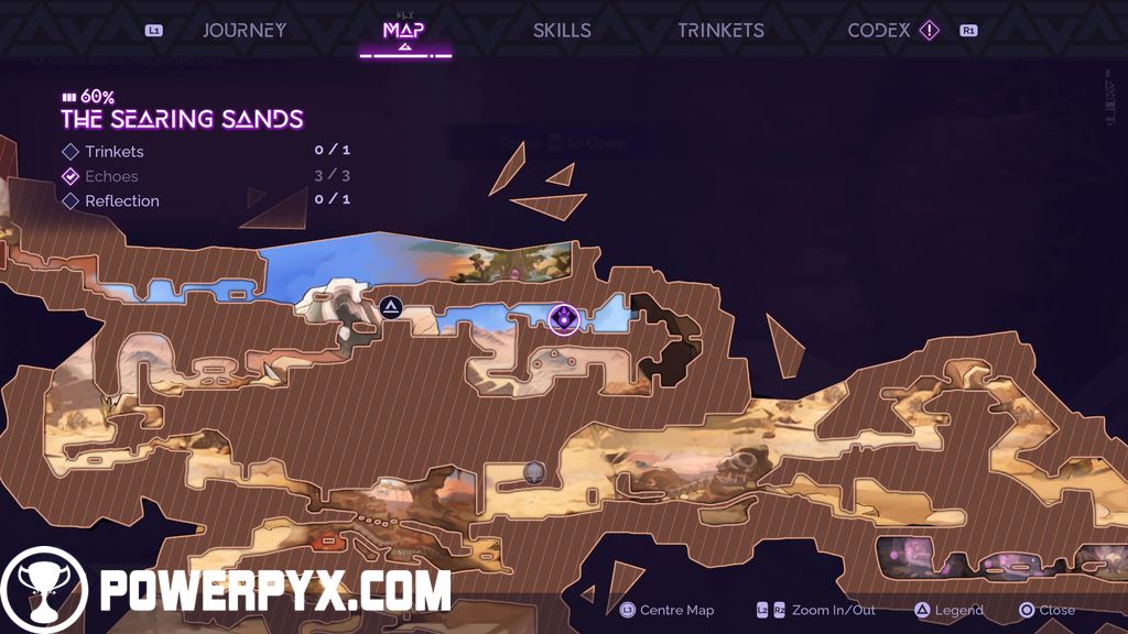 #4 – Trinket (Augmented Spirit): as you make your way up in the Searing Sands, you will come across the symbol for the challenge leading to this Trinket. Complete the platforming challenge to obtain this.