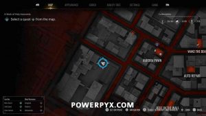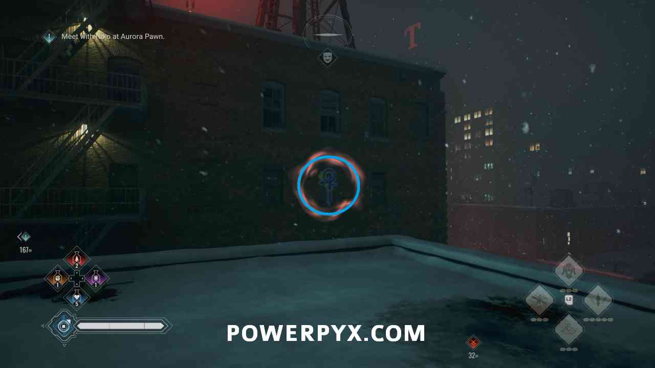 Southwest of Aurora Pawn in the block in the corner of the map, and the rooftop near the street.