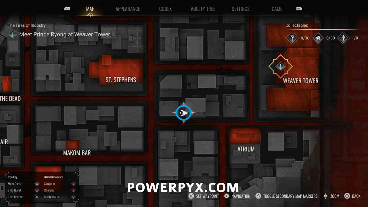 Missable Warning: Anarch tags must be collected before entering Weaver Tower at the end of the third last main story quest The Coursing of the Rats. After you enter Weaver Tower during this main quest you can’t exit, and therefore can’t obtain the remaining collectibles without reloading a prior main quest save or starting a new playthrough.