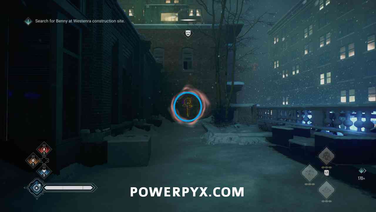Across the street northwest of Haven, in the narrow alleyway between the two buildings.