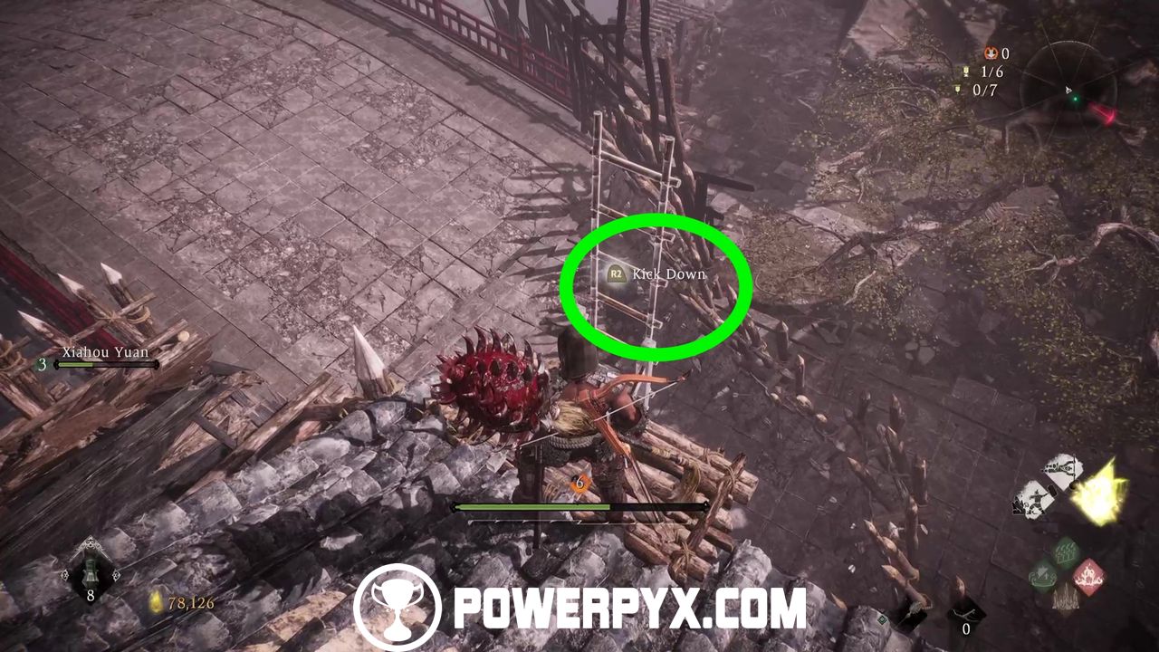 Now drop back down into the room, climb up the stairs and then the ladder to get back outside. As soon as you move, you’ll be invaded by Gao Shun. Let him come to you and use your ally to dispose of him if necessary.