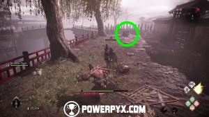 Now you can cross the bridge and kill the axe-wielding soldier that control the corruption of Battle Flag 2. Once he’s down, raise it.