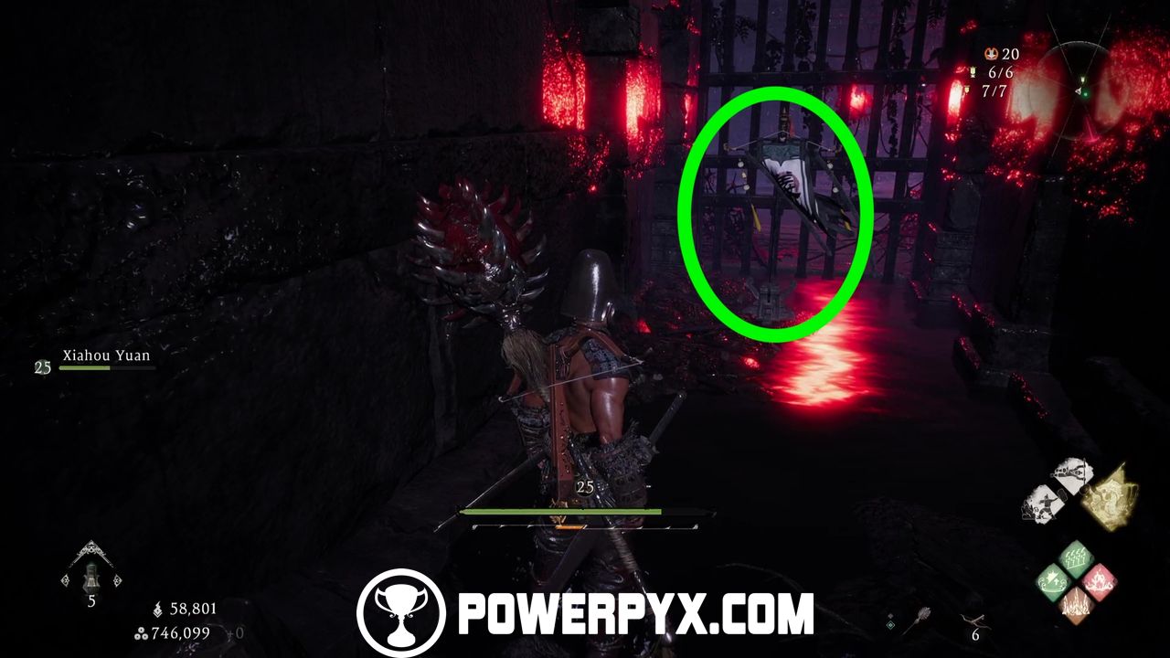 Cross it and you’ll see Battle Flag 4. However, it’s corrupted. The corruption is controlled by the nearby spear-wielding soldier. When you’re done, raise it.