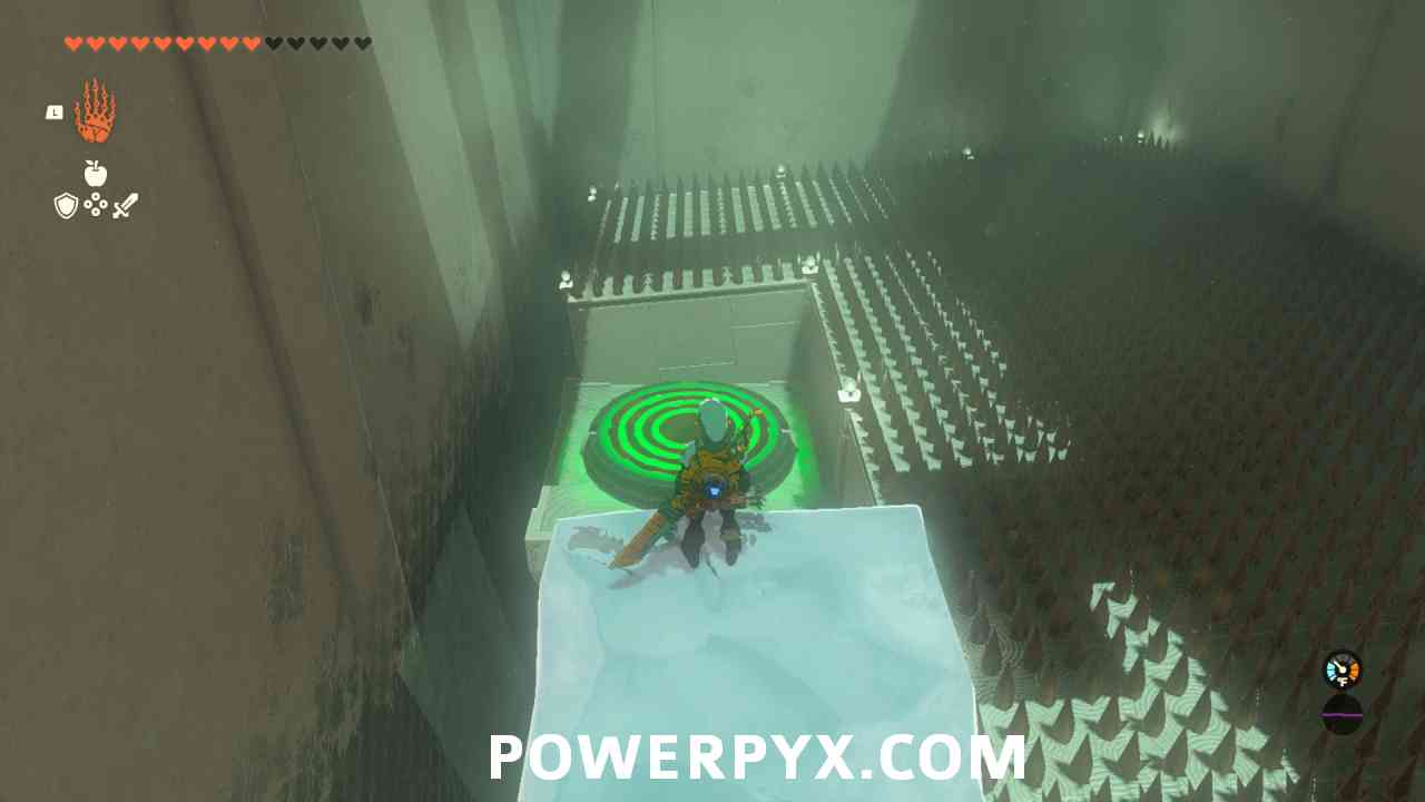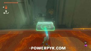 - Head into the shrine and grab the Ice Fruit off the trees and use Ice Arrows or the Frost Emitters in the room to create ice platforms: