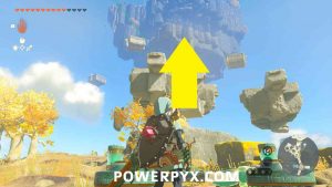 - Head to the Northeast staircase heading down and on the main path on the right side you will find a zonai device already built. Use this device to fly up to the island ahead where the vines are: